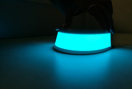 Product Feature: cold light, emitted by a flexible thin device, possible to produce in several shapes, geometries, sizes and colours, with a progressive degradation throughout its lifetime, in contrast to usual light sources that suffer total failure at the end of their lifetime.